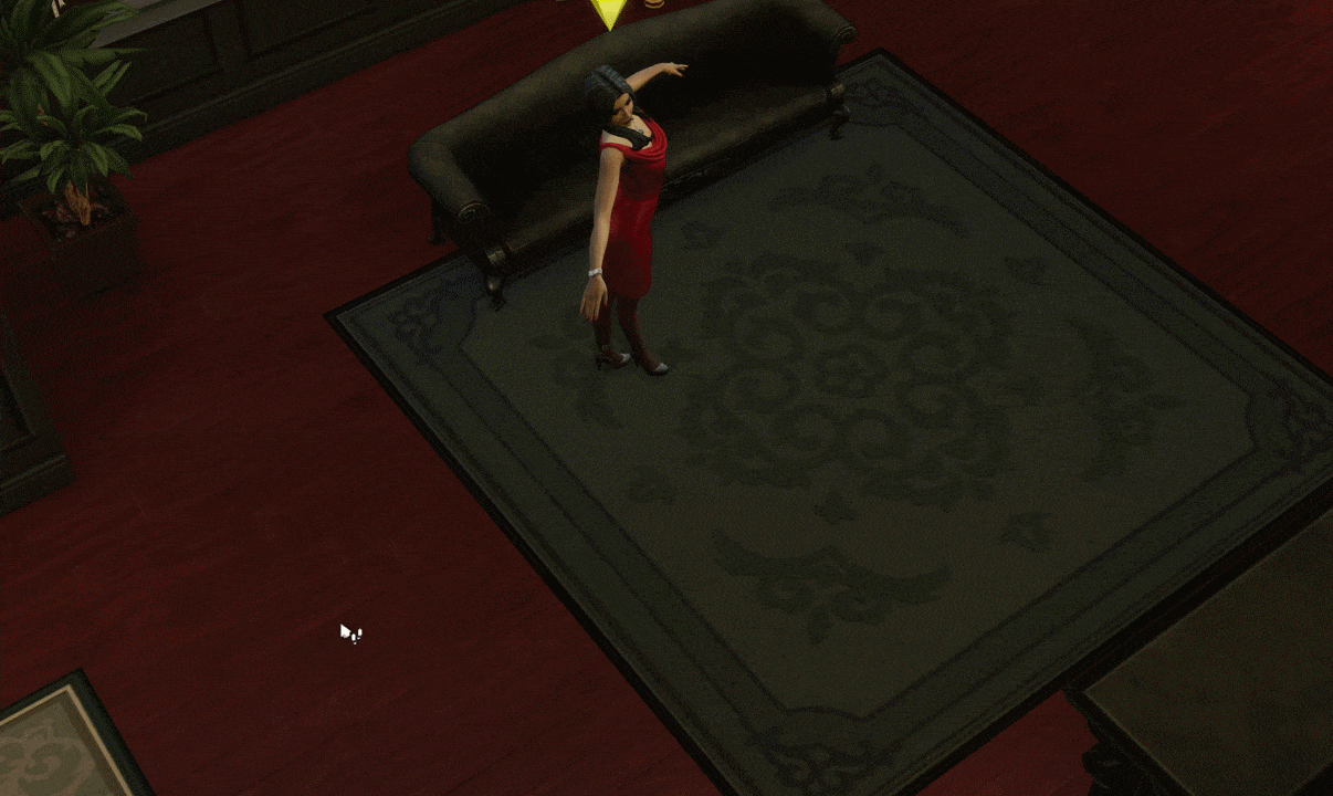 Once clicked, the move, rotate and align interactions work as if the non-household sim was the sim you are currently controlling. The flag set for this gets reset when using the interaction described next, when changing your active/controlled sim, when the flagged NPC sim gets unloaded or when the flagged NPC sim stops posing.